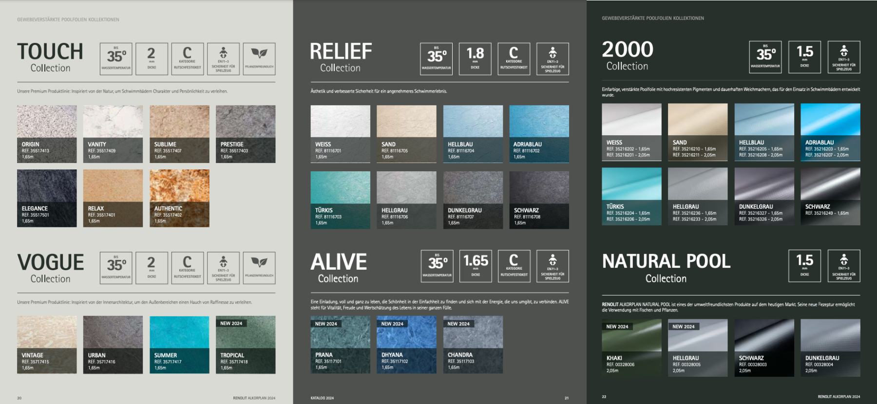 Entdecken Sie die wundervolle Welt der Schwimmbadfolien Baselland – hier warten faszinierende Designs auf Sie! Egal, ob Sie den klassischen Edelstahl-Look oder die frische, moderne PVC-Optik bevorzugen, bei uns finden Sie genau das Richtige für Ihren Traumpool! Unsere hochwertigen Folien, wie Renolit Alkorplan, sorgen nicht nur für ein wunderschönes Erscheinungsbild, sondern auch für Langlebigkeit und rundum Dichtheit Ihres Schwimmbeckens.